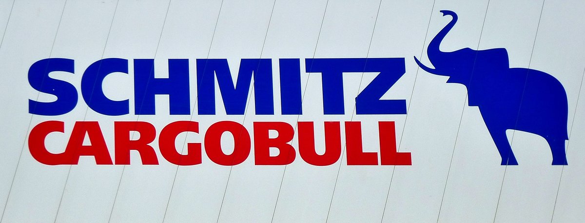 SCHMITZ CARGOBULL, Logo und Schriftzug an einem Sattelauflieger, die Fahrzeubaufirma im Münsterland besteht seit 1892, Aug.2017