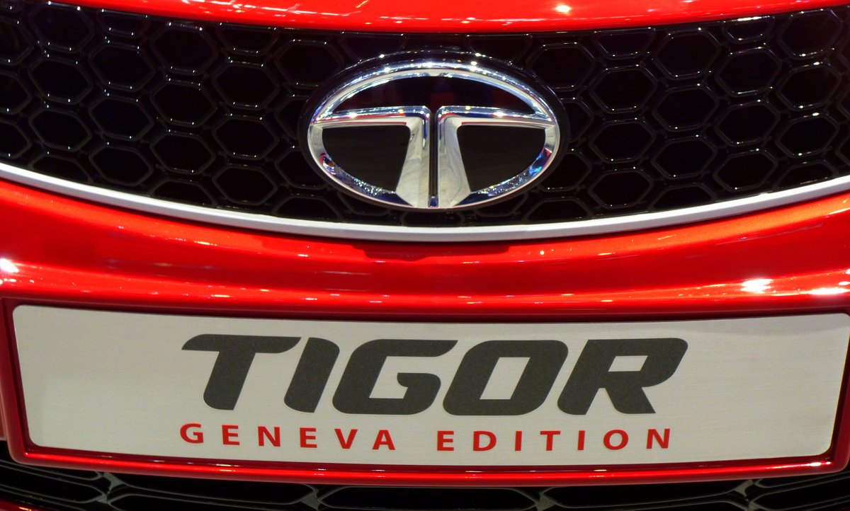 TIGOR, Kühleremblem an einem PKW der indischen Automarke Tata, Aug.2017