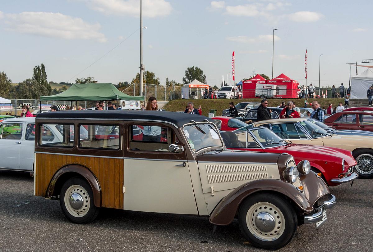 IFA F8 (Nachfolger des DKW F8), Kombikarosserie mit Holzdeckung an der Seite, fotografiert auf der Hungaroring Classic am 01.10.2017.
