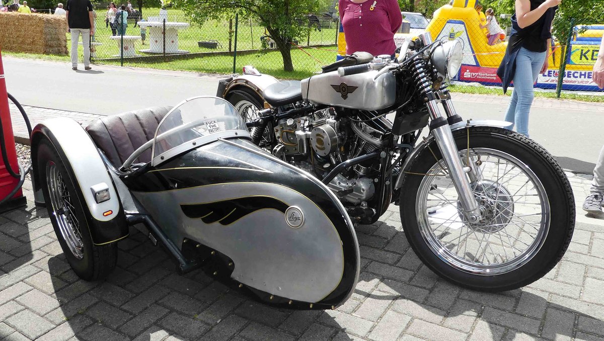 =Harley Davidson Chopper, Bj. 1948, gesehen beim Ortsjubiläum von Spahl im Juni 2017