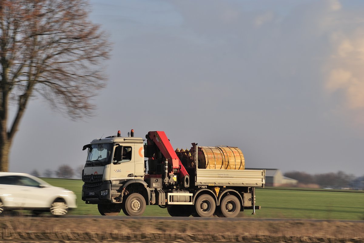 Mercedes Benz Actros 2648 mit ausgefahrenem Kran. Eggenfelden 02.02.2017