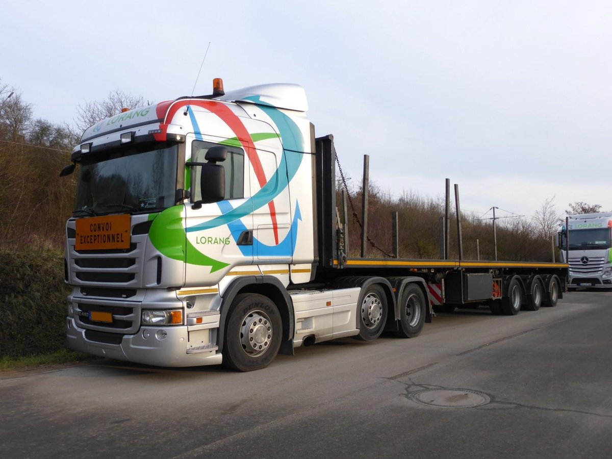 Mitzieher Scania R 450, am 6.2.2017 auf der L 164 (ex B221) bei Übach - Palenberg