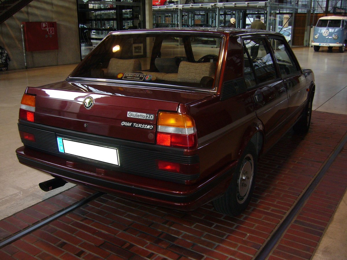 Alfa Romeo Giulietta der Baureihe 116 in der Heckansicht. 1977 - 1985. Classic Remise Düsseldorf am 26.02.2017.
