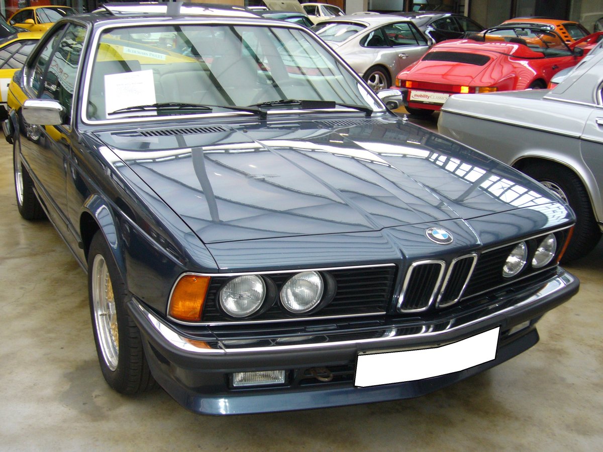 BMW E24 635 CSi. 1982 - 1987. Der abgelichtete E24 im Farbton lapisblaumetallic entstammt dem Baujahr 1986. Der mit einer rechtsseitigen Neigung von 30 Grad verbaute