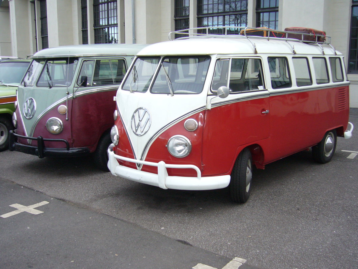Diese beiden VW T1 Busse von Volkswagen do Brasil warten an der Düsseldorfer Classic Remise wohl auf ihre Restaurierung bzw. ihren Verkauf. Düsseldorf am 26.02.2017.