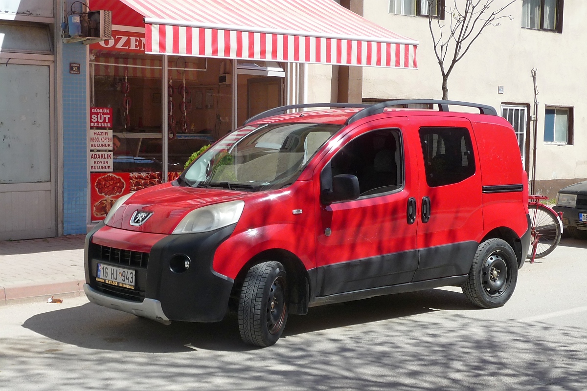 Peugeot Bipper Tepee vor einer Metzgerei in Inegöl, 3.4.2016
