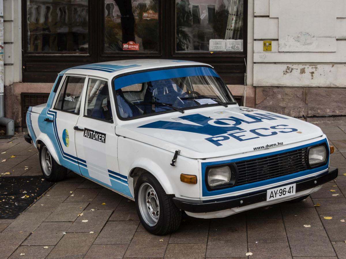 Polski Fiat 125 P als Rallyeauto, gesehen auf der 50. jubiläums Mecsek Rallye, Oktober 2016