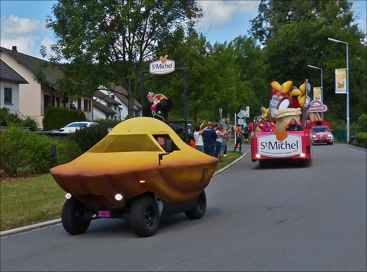 Ein als lekerer Keks umgebautes Fahrzeug, nahm als Werbefahrzeug in der Caravane du Tour auf den Straßen durch Luxemburg teil. 03.07.0217