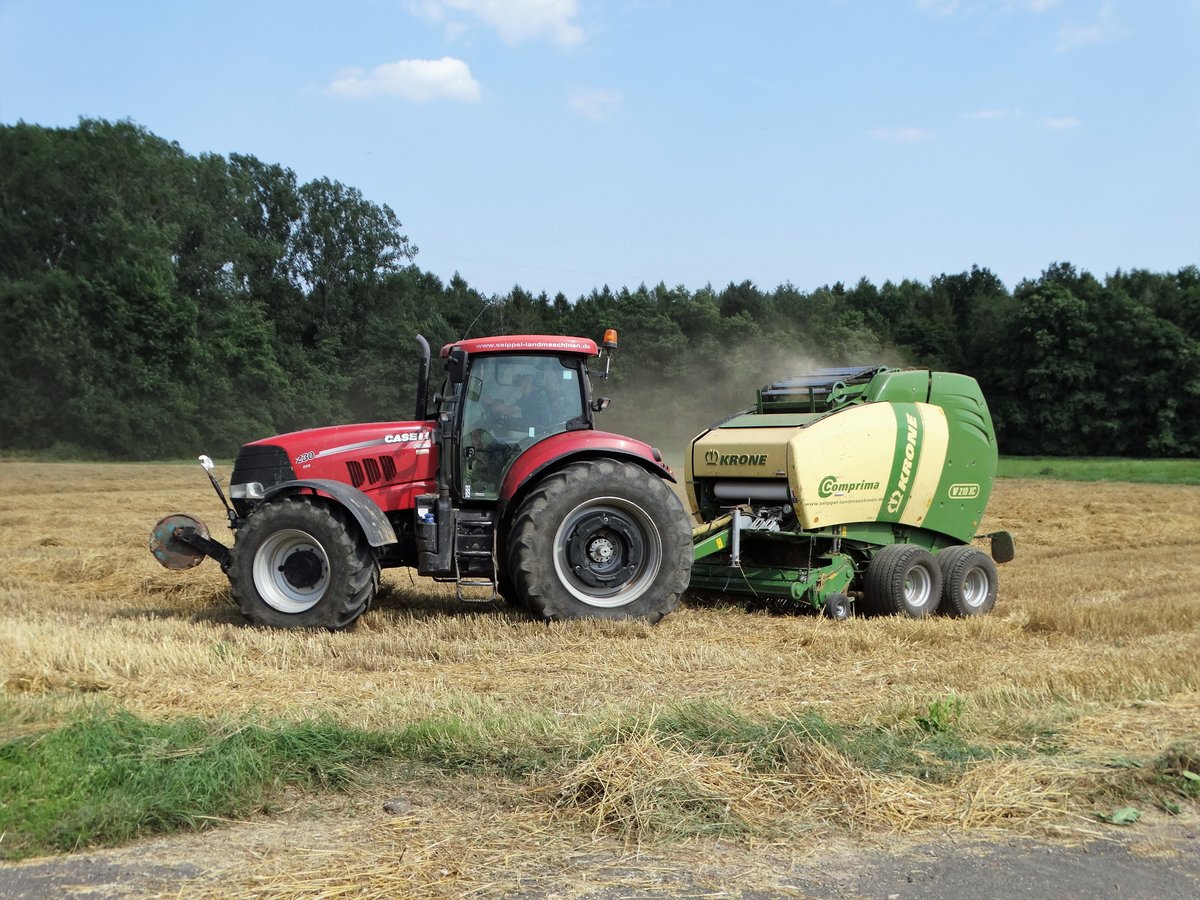 CASE Puma 230 mit Krone Comprima V210 XC Rundballenpresse am 19.07.17 bei Maintal Hochstadt