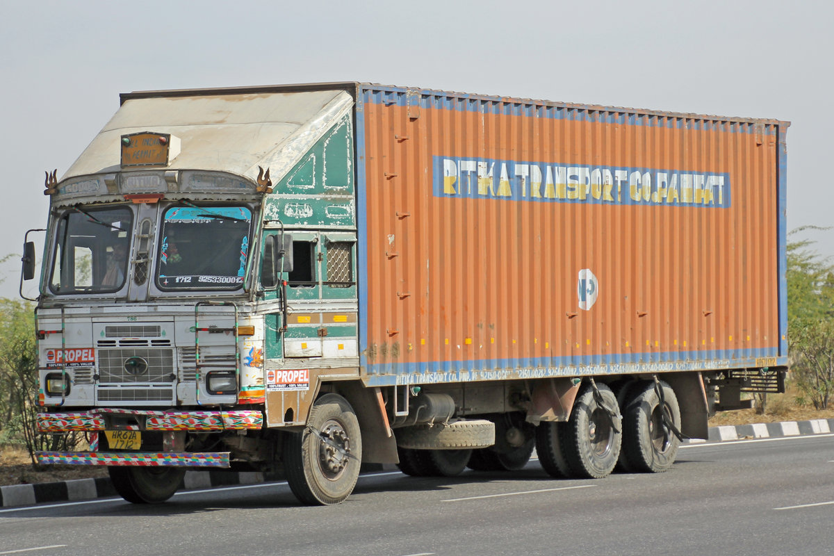 Ashok Leyland 2516, 17.Februar 2017, Jaipur Kishangarh Expressway, Rajasthan, Indien.