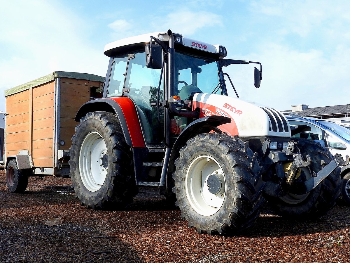 STEYR 9080M, mit kleinem Viehtransportanhänger; 170404