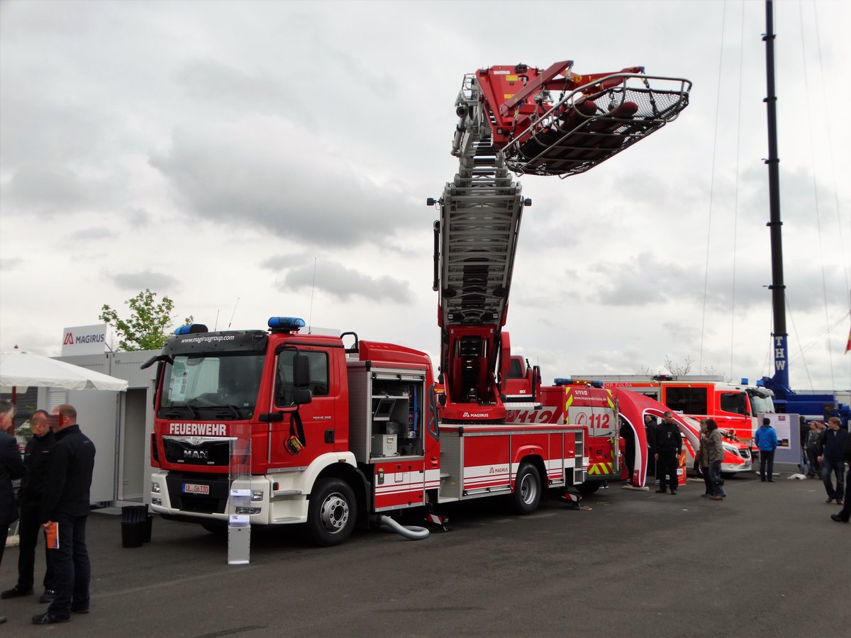 MAN TGM Magirus Drehleiter am 12.05.17 auf der RettMobil in Fulda