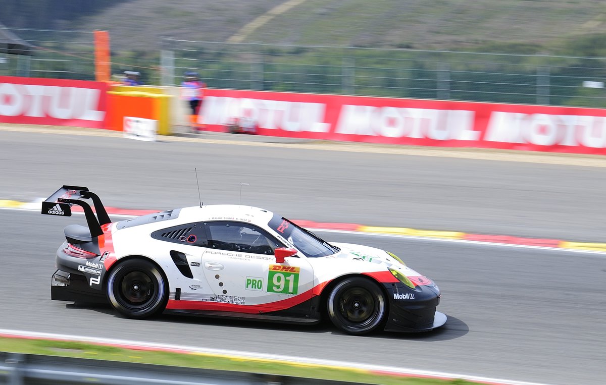Mitzieher des Neuen Porsche 911 RSR (2017)Vierliter-Boxermotor (Basis 911 GT3)mit Direkteinspritzung. Werks Porsche Team, Porsche 991 RSR Nr.: 91 Richard Lietz & Frédéric Makowiecki. FIA WEC 6h Langstrecken- WM am 6.Mai 2017 in Spa Francorchamps