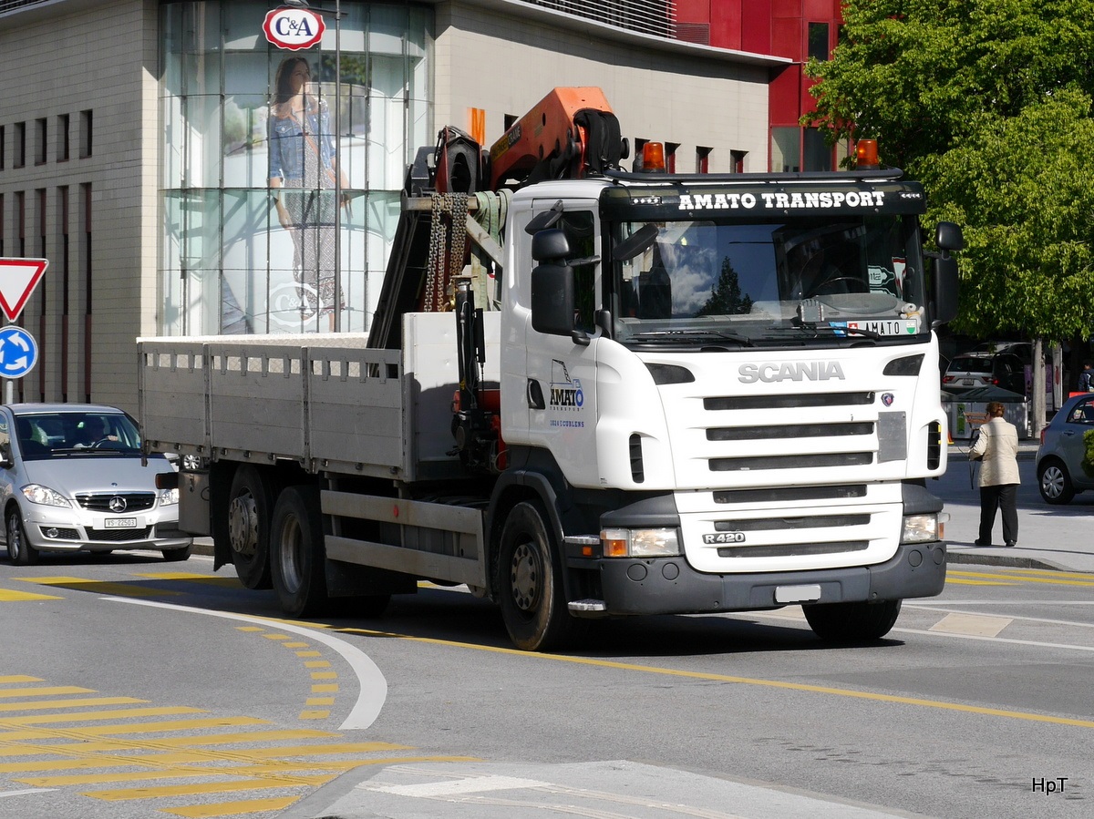=Scania R580 der Firma "Schnabel" mit Palfinger-Kran steht auf einer Baustelle in Petersberg-Marbach, Mai 2017