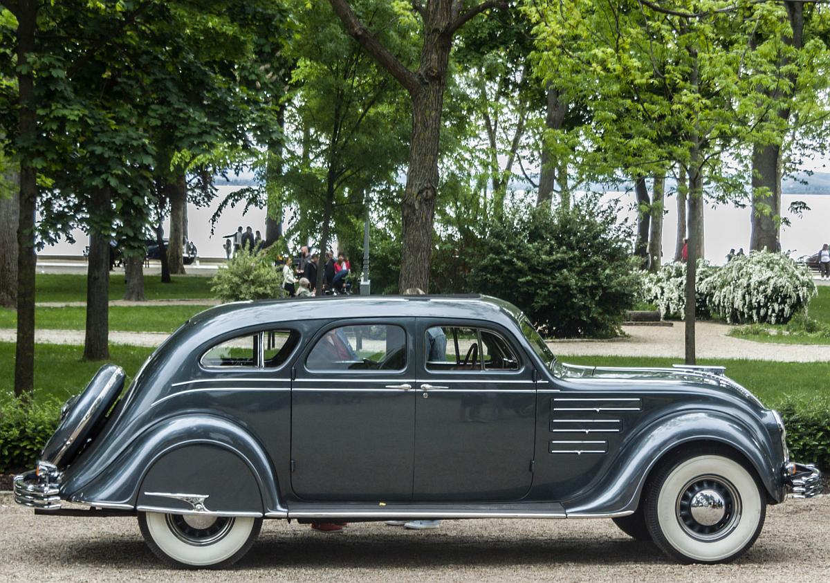Dieser Chrysler Airflow (Stromlinienfahrzeug) hat den großen Preis der IV. Balatonfüred Concours d'Elegance gewonnen (Mai, 2017). Der Chrysler Airflow gehört zu den ersten aerodynamischen Autos. Hier ist der einzige in Europa existierende Stück zu sehen.