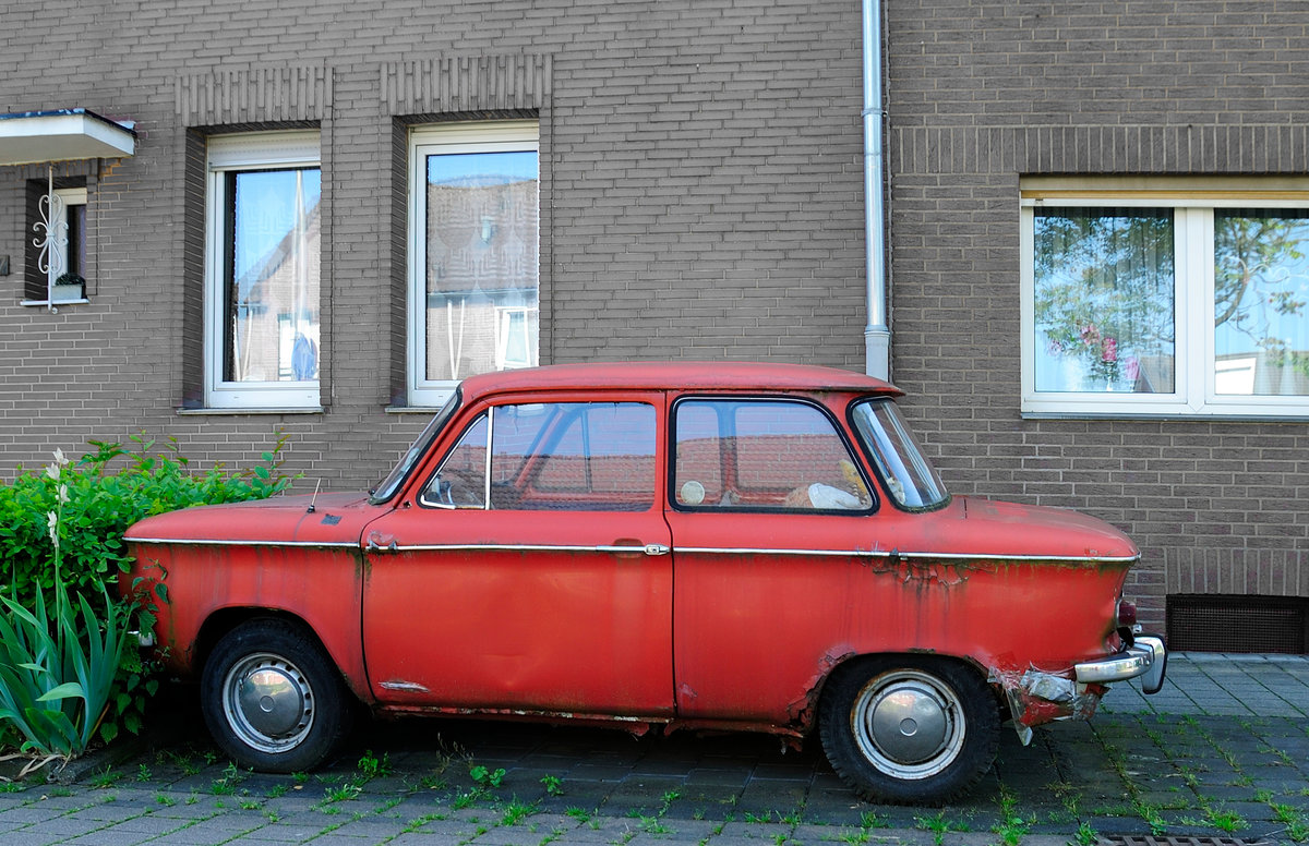"Nicht gerade ein Traum Oldtimer" NSU Prinz L, der schon sehr lange auf dien Öffentlichen Parkplatz am Straßenrand im Raum Aachen abgestellt ist habe ich das Kennzeichen unkenntlich gemacht. Ich glaube nicht das der kleine Prinz fahrtüchtig ist. Aufnahme vom 31.05.2017. Die Hauswand habe ich entsättigt damit das Fahrzeug besser zur Geltung kommt.