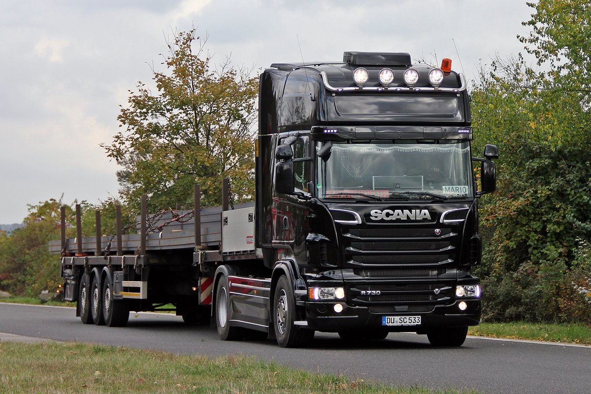 Scania R730 V8 von Peterhänsel Transporte unterwegs auf einem Parkplatz an der A44 zwischen Zierenberg und Breuna. 9.10.2012