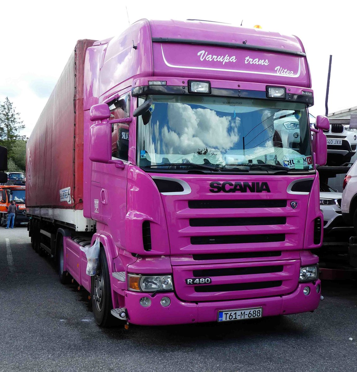 =Scania R 480-Sattelzug von "Varupa trans" aus Bosnien-Herzegowina rastet an der A7 im September 2017