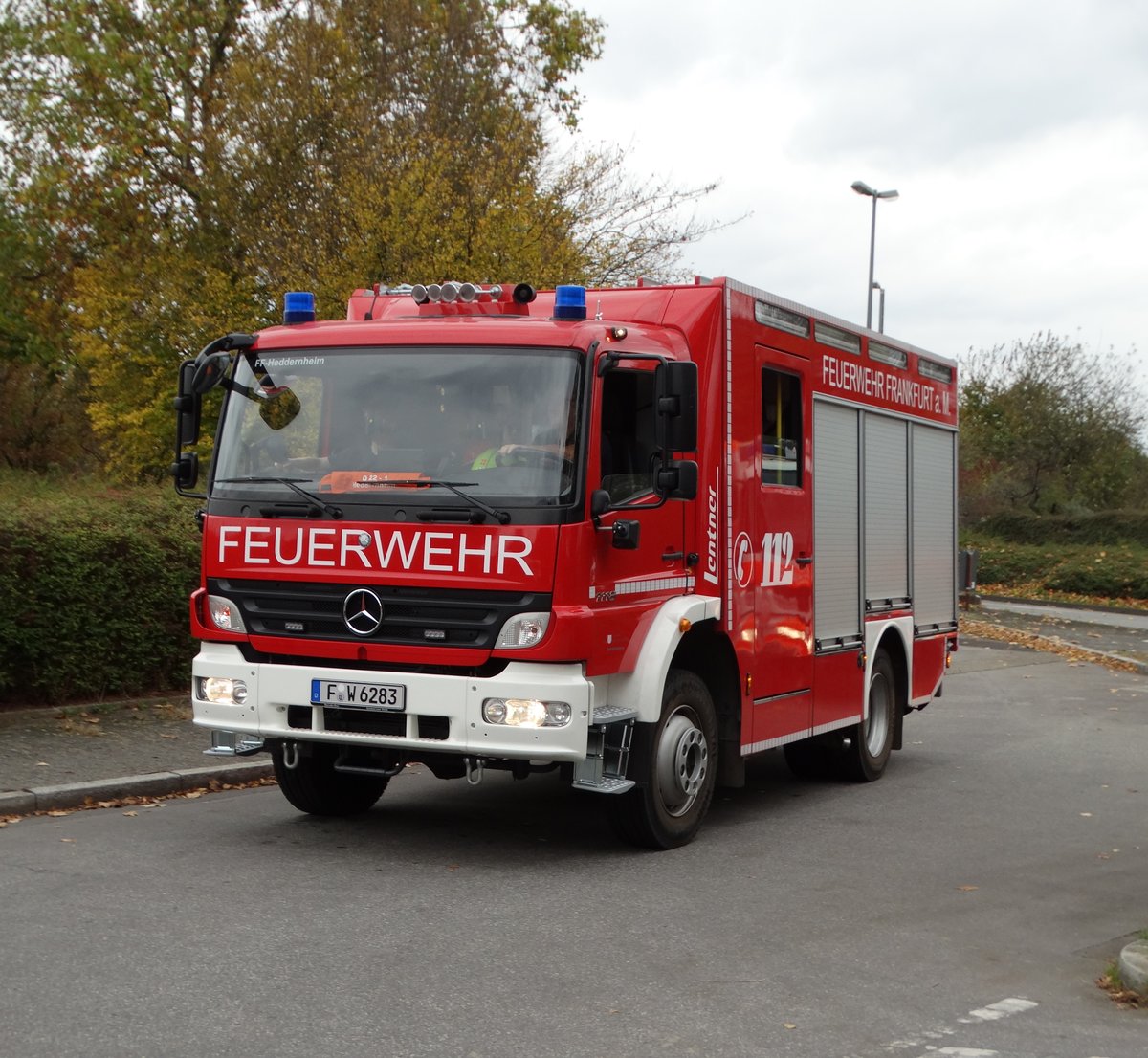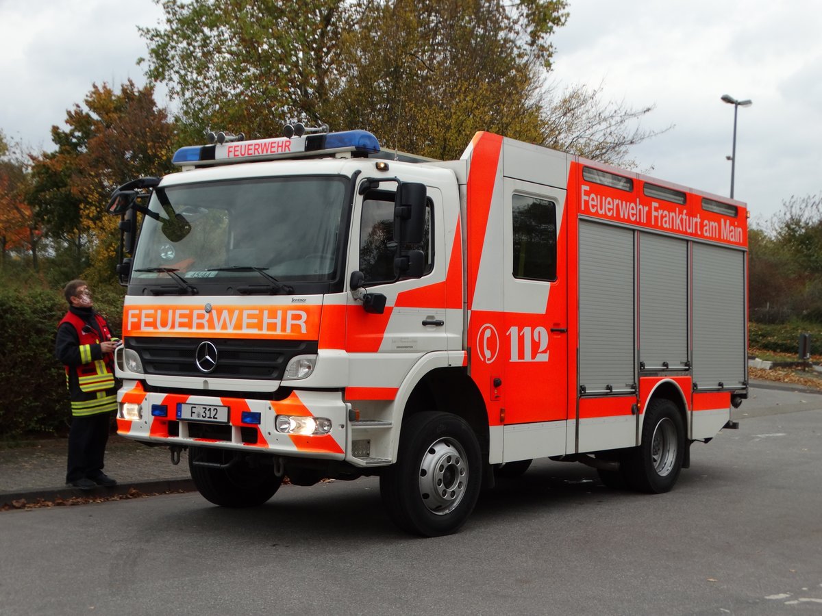 Feuerwehr Frankfurt Heddernheim Mercedes Benz Atego LF10/6 (Florian Frankfurt 22/1) am 28.10.17 im Bereitstellungsraum in Rödelheim wegen der Herbstabschlussübung der Jugendfeuerwehr