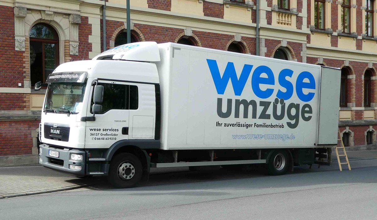 =MAN als Möbeltransporter von "WESE-Umzüge" gesehen im Juli 2017 in Fulda
