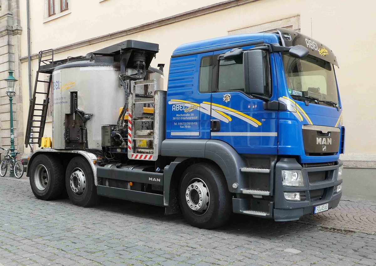 =MAN als Transportfahrzeug für Gussasphalt von "ABEL-Estriche" gesehen im Juli 2017 in Fulda