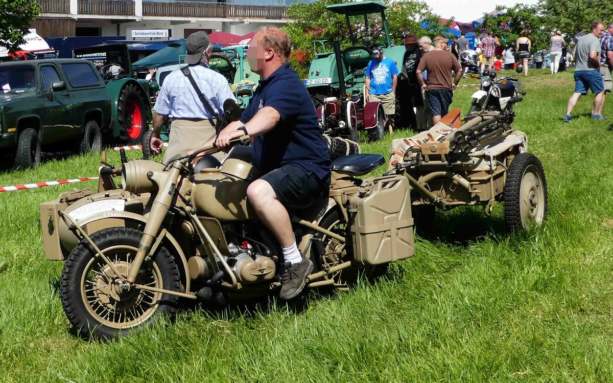 =BMW R75 - Wehrmachtsgespann, rollt zu seinem Standplatz bei der Oldtimerausstellung in Thalau im Mai 2017