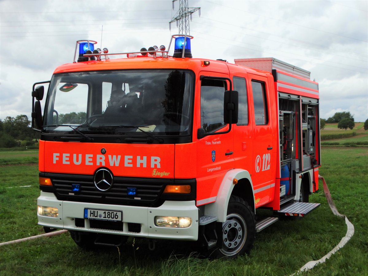 Feuerwehr Langenselbold Mercedes Benz Atego LF10 (Florian Langenselbold 1-43-1) am 09.09.17 bei einer Jugendfeuerwehr Großübung in Maintal Wachenbuchen