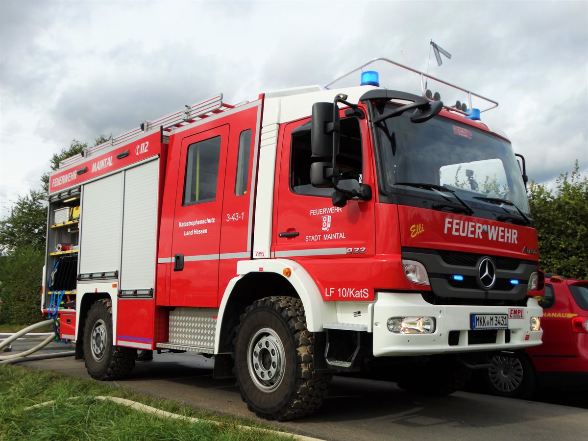 Feuerwehr Maintal Mercedes Benz Atego LF10/6 KatS (Florian Maintal 3-43-1) am 09.09.17 bei einer Jugendfeuerwehr Großübung in Maintal Wachenbuchen