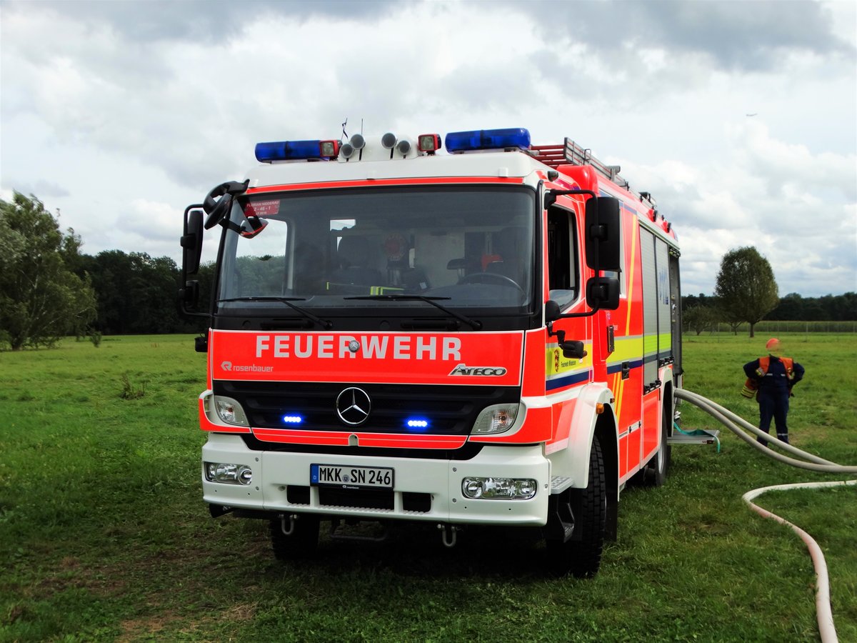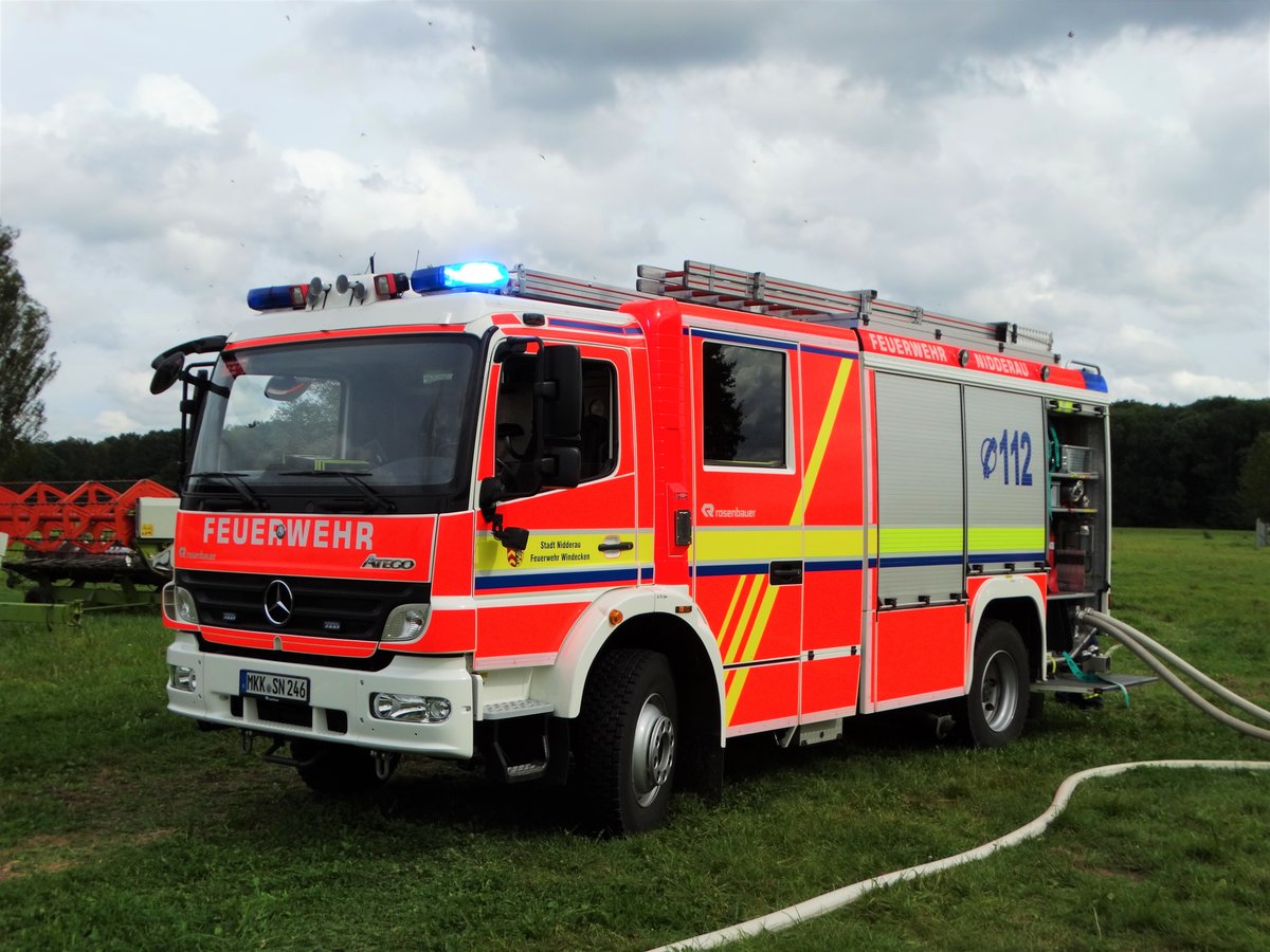 Feuerwehr Nidderau Windecken Mercedes Benz Atego LF20/16 (Florian Nidderau 02/46-01) am 09.09.17 bei einer Jugendfeuerwehr Großübung in Maintal Wachenbuchen