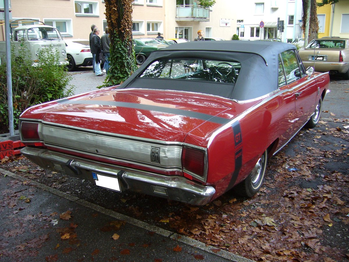 Dodge Dart Convertible GT des Modelljahres 1967. Im Modelljahr 1967 gehörte die Modellreihe Dart zum Mittelklassesegment. Den Dart konnte wahlweise mit einem 6-Zylinderreihenmotor und einem Hubraum von 2789 cm³ und 145 PS oder mit einem V8-motor, der aus 4490 cm³ Hubraum 180 PS oder 235 PS leistet geordert werden. Während ein Dart GT Convertible mit dem