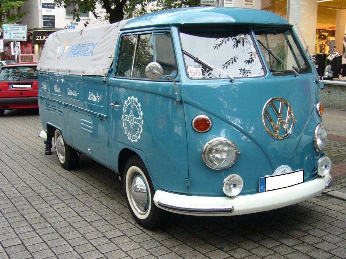 VW T2a Pritschenwagen. 1967 - 1972. Der neue "Bulli" und seine Ableger wurde im August 1967 vorgestellt. Auch in der zweiten Generation der Transporter setzte man bei Volkswagen wieder auf den im Heck verbauten, luftgekühlten 4-Zylinderboxermotor. Dieser leistet aus 1584 cm³ Hubraum bis zum Modelljahr 1970 47 PS. Danach erhöhte sich die Leistung durch eine andere Vergaserbestückung auf 50 PS. Ein solcher Pritschenwagen kostete bei seiner Markteinführung DM 6475,00. Eine Plane für die Ladefläche kostete DM 325,00 zusätzlich. Duke of Downtown am 09.09.2017 in Essen-Rüttenscheid.