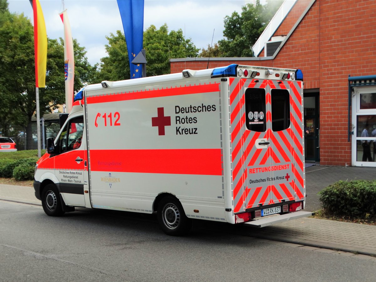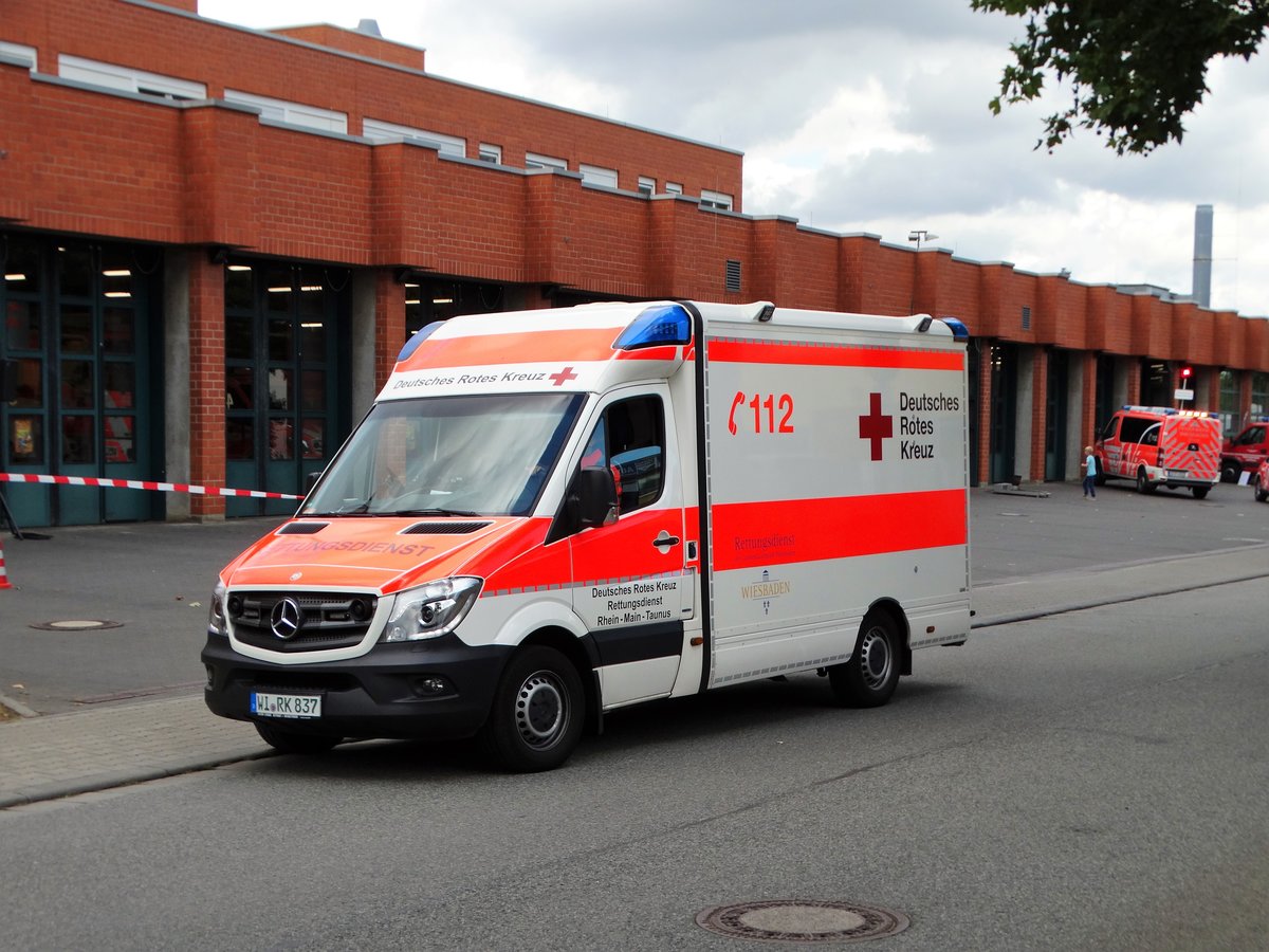 DRK Wiesbaden Mercedes Benz Sprinter RTW am 16.09.17 beim Tag der offene Tür an der Wache 2 in Mainz Kastel der BF Wiesbaden