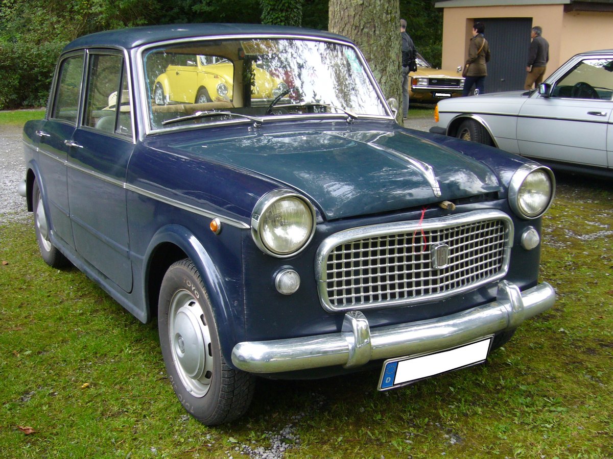Fiat 1200 Granluce der ersten Serie. 1957 - 1959. Der Fiat 1200 war das Nachfolgemodell des seit 1953 produzierten 1100. Es bestand weiterhin eine Ähnlichkeit in der Karosserieform. Angetrieben wird der "Milleduecento" von einem wassergekühlten 4-Zylinderreihenmotor, der aus 1221 cm³ Hubraum 55 PS leistet. Oldtimertreffen Schwarzwaldhaus/Neandertal am 17.09.2017.