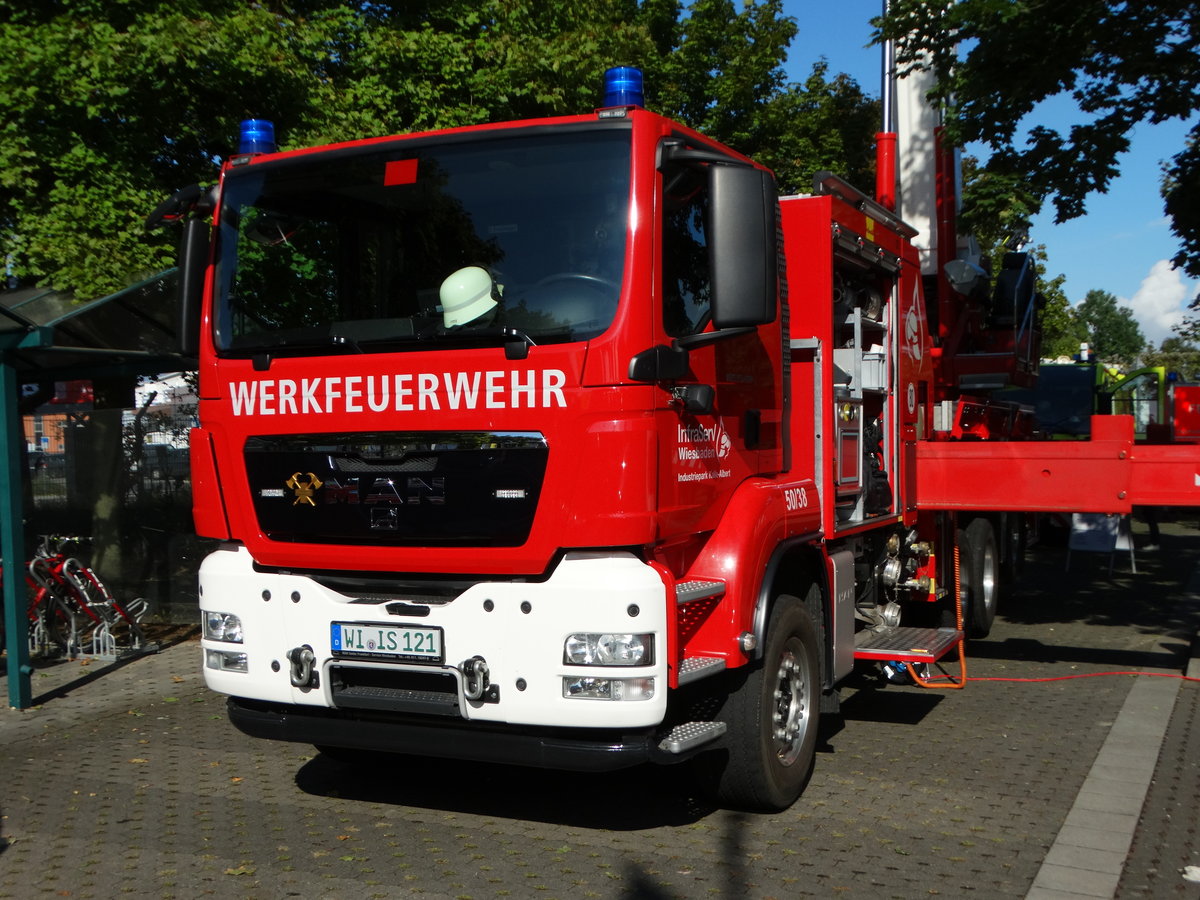 Infraserv Wiesbaden MAN TGS Teleskopmast am 16.09.17 beim Tag der offene Tür an der Wache 2 in Mainz Kastel