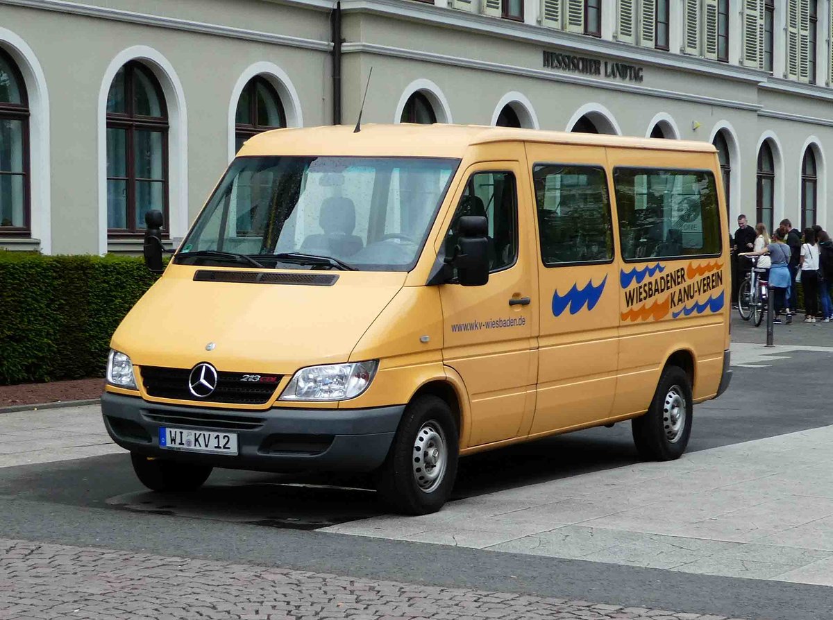=MB Sprinter vom Wiesbadener Kanu-Verein, steht auf dem Wiesbadener Wochenmarkt im Juli 2017