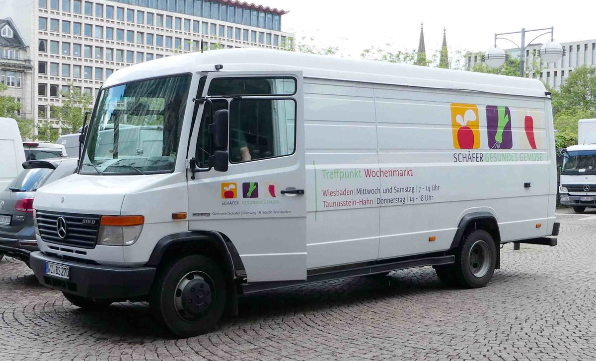 MB Vario vom Gemüsehändler SCHÄFER steht auf dem Wiesbadener Wochenmarkt im Juli 2017