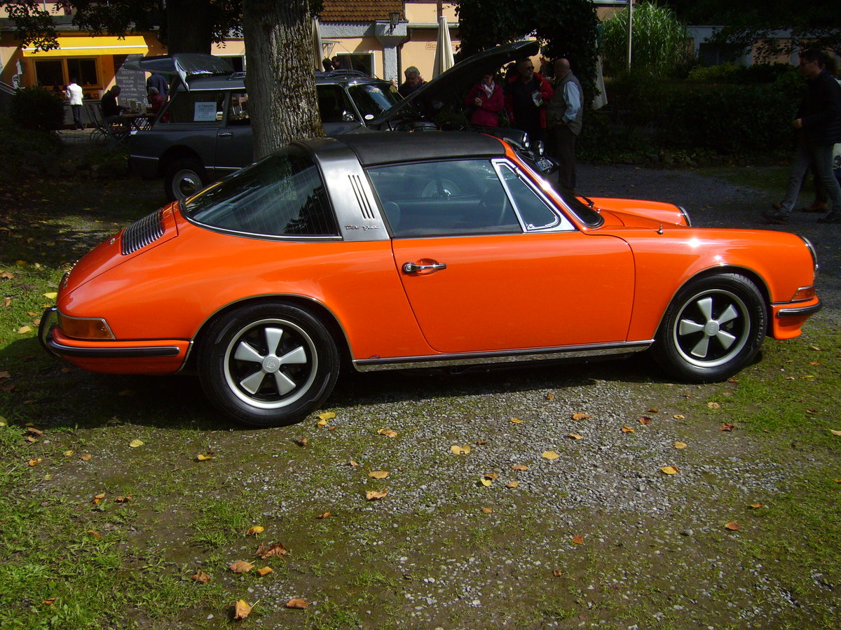 Profilansicht eines Porsche 911 T Targa. 1968 - 1973. Oldtimertreffen Schwarzwaldhaus/Neandertal am 17.09.2017.