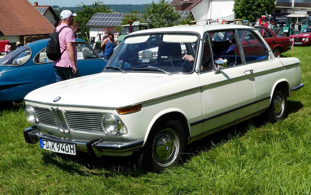 =02er BMW rollt zu seinem Standplatz bei der Oldtimerausstellung in Thalau im Mai 2017