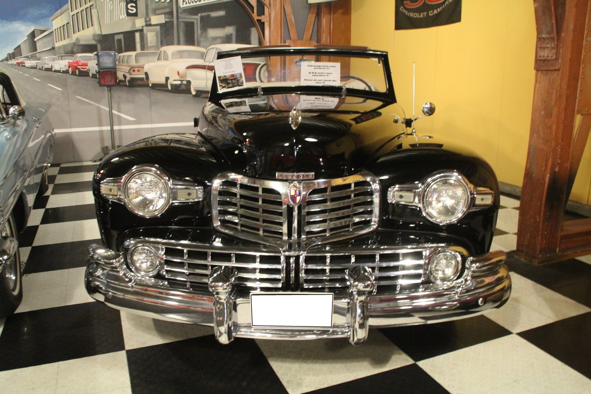 Frontansicht eines Lincoln Continental Convertible des Modelljahres 1942. Aufgrund des Ausbruchs von WW2, wurde von diesem Modell nur noch 136 Fahrzeuge produziert. Dieses äußerst gepflegte Cabriolet stammt aus dem sonnig-heißen New Mexico. Ein solches Cabriolet schlug mit genau US$ 3000,00 zu Buche. Der 8-Zylindermotor hat einen Hubraum von 5.5l und leistet 152 PS. Emmerich am 26.07.2017.