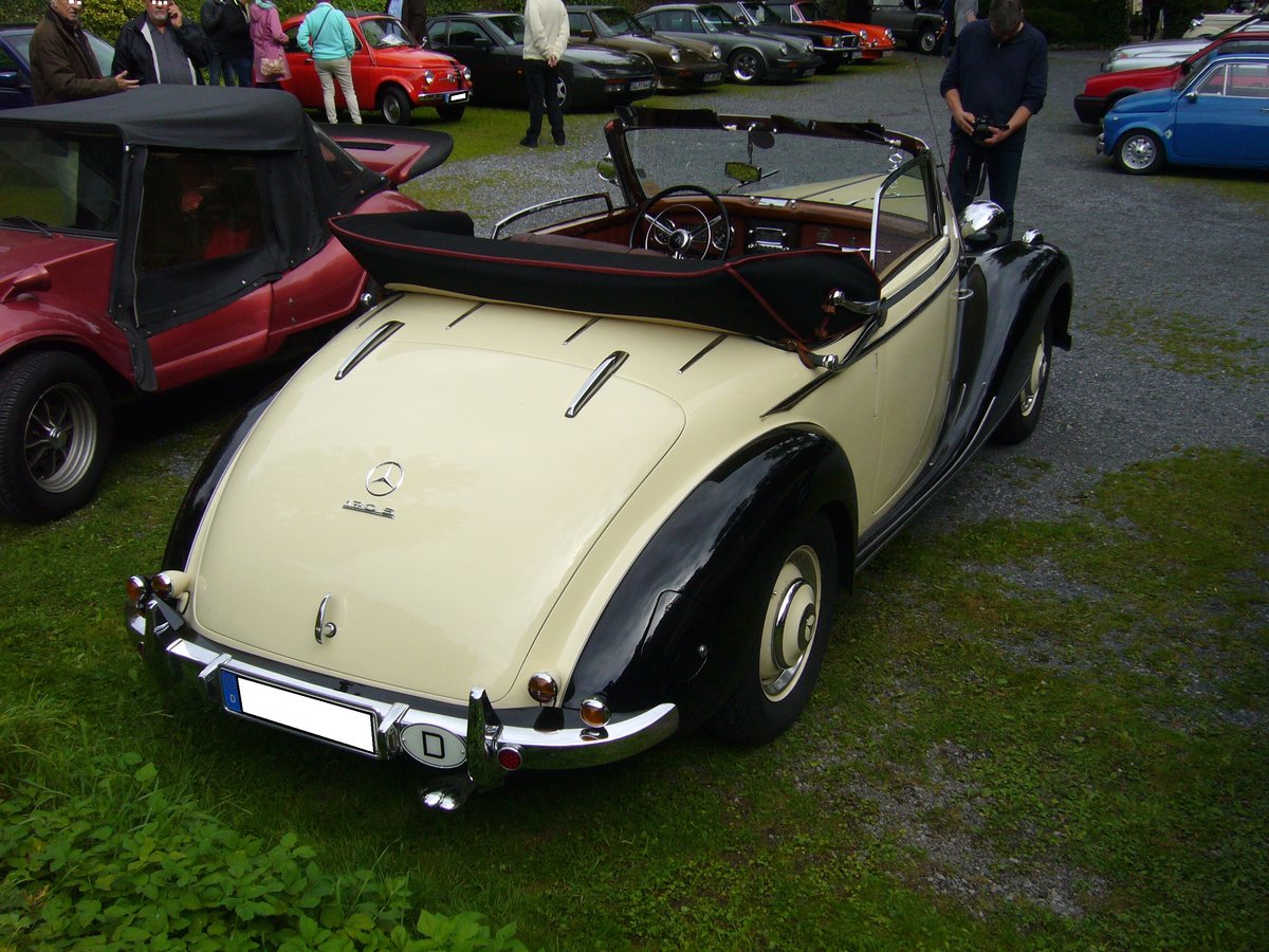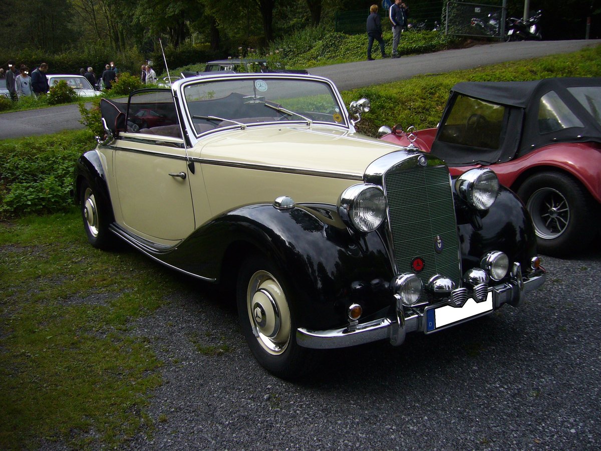 Mercedes Benz W136 IV 170S Cabriolet A. 1949 - 1951. Von diesem Modell wurden während sein dreijährigen Produktionszeit lediglich 830 Fahrzeuge gebaut. Der 4-Zylinderreihenmotor leistet 52 PS aus 1767 cm³ Hubraum. Oldtimertreffen Schwarzwaldhaus/Neandertal am 17.09.2017.