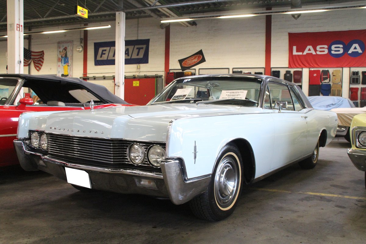 Lincoln Continental Coupe des Modelljahres 1966. Dieses, im Farbton powder blue lackierte, Coupe wird von einem V8-motor mit 7565 cm³ Hubraum angetrieben. Dieser Motor leistet 340 PS. Emmerich am 26.07.2017.