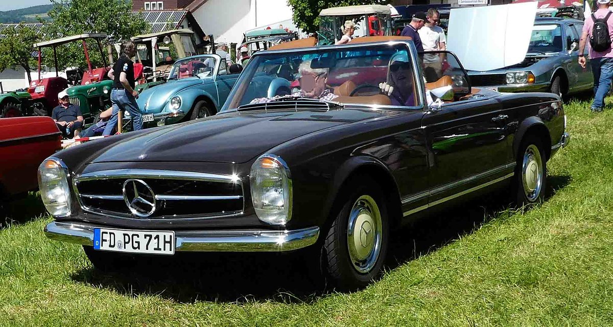 =MB W 113 rollt zu seinem Standplatz bei der Oldtimerausstellung in Thalau im Mai 2017