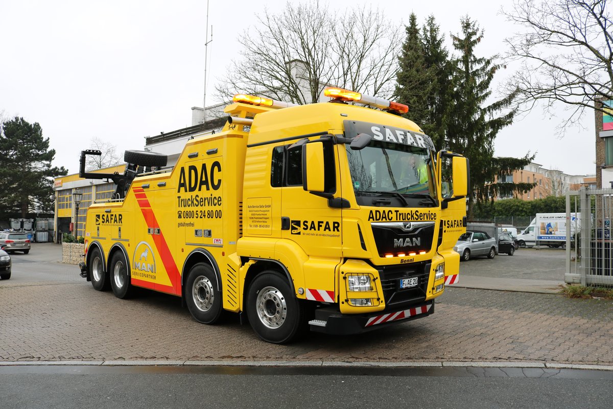 ADACTruckService/Safar MAN TGX V8 (EMPL Bison) Aschleppfahrzeug für LKW und Busse am 06.01.18 in Frankfurt Preungesheim. Dieses Foto entstand bei einen vereinbarten Fototermin