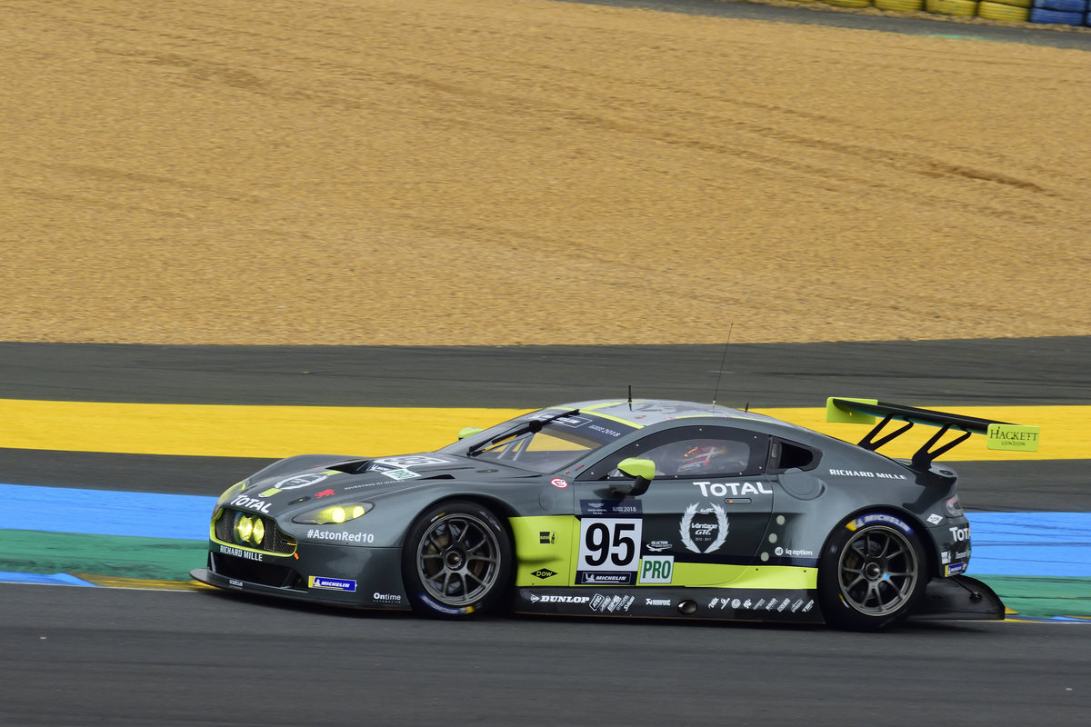 LMGT-Pro Nr.95, Aston Martin Racing, mit Aston Martin Vantage GTE, Fahrer: Nicki Thiim, Marco Sørensen & Darren Turner. Mitzieher am Samstag Abend 16.Juni 2018, 86. 24-Stunden-Rennen von Le Mans.