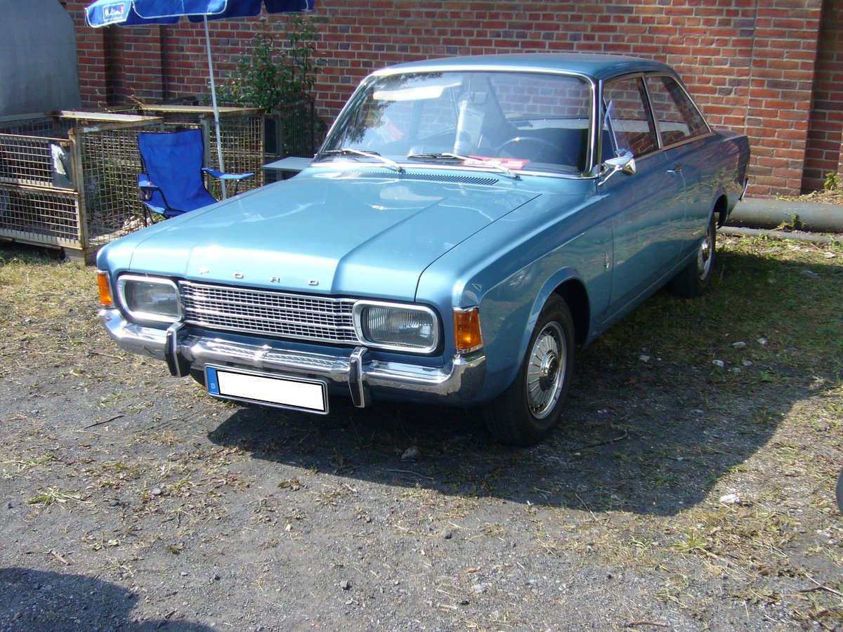 Ford Taunus P7b als zweitürige Limousine. 1968 - 1971. Der abgelichtete P7b 17M ist mit dem selten bestellten V6-motor mit 1812 cm³ Hubraum und 82 PS motorisiert. Der Wagen trägt allerdings die Radkappen des Spitzenmodells 26M. Oldtimertreffen Zeche Hannover in Herne am 22.07.2018.