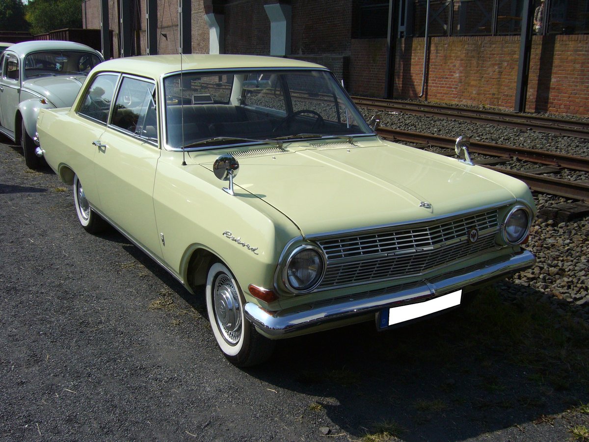 Opel Rekord A als zweitürige Limousine. 1963 - 1965. Der Rekord A kam im Stil des amerikanischen Chevy II einher. Es gab einige Motorisierungsvarianten: 1488 cm³ mit 55 PS, 1680 cm³ mit 60 PS oder 67 PS und einen 6-Zylinderreihenmotor der aus 2605 cm³ 100 PS leistet. Der abgelichtete Rekord ist mit dem 1.7l Motor ausgerüstet. Oldtimertreffen Zeche Hannover in Herne am 22.07.2018.