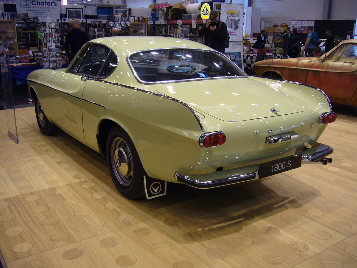 Volvo P 1800 S. 1963 - 1972. Das von Frua gezeichnete Coupe stand bereits ab 1961 bei den Volvo-Händlern. Anfangs wurde der Wagen bei Jensen/GB montiert. Aufgrund von Qualitätsmängeln, wurde die Produktion 1963 ins Werk Lundby/S verlegt. Die hier produzierten Fahrzeuge sind am Buchstaben S in der Typenbezeichnung erkennbar. Von 1961 - 1968 hatte der P 1800 einen 4-Zylinderreihenmotor mit 1.8l Hubraum. Nach den Werksferien 1968 wurde ein 2.0l Motor verbaut. Techno Classica Essen am 18.03.2018.