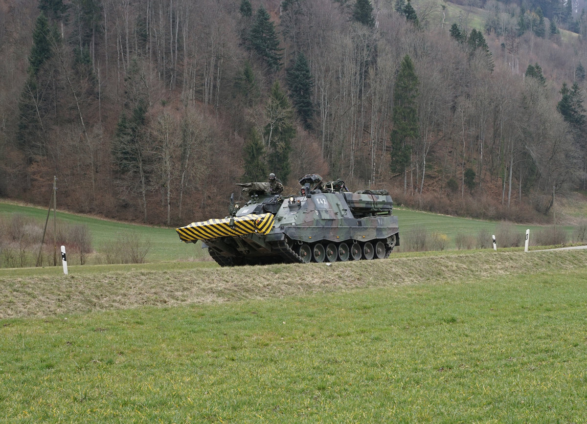 Leider immer weniger hat man in der Schweiz als Fotograf von Militärfahrzeugen die Möglichkeit, Raupenfahrzeuge im Strassenverkehr zu beobachten.
