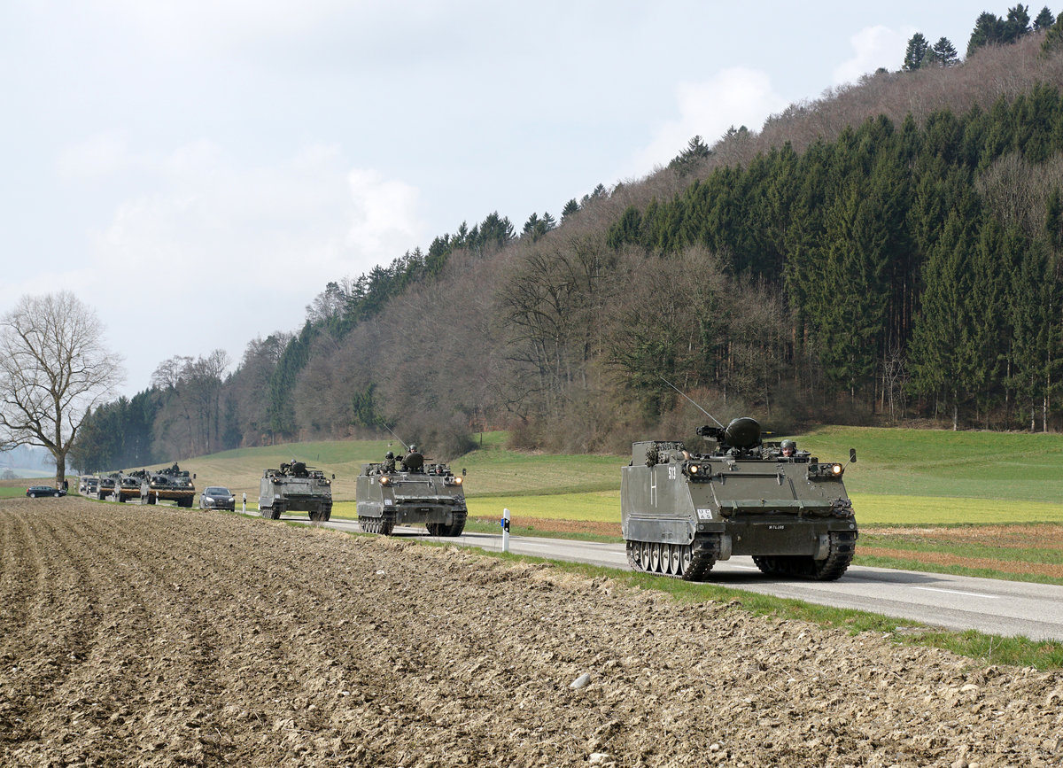 Panzerkolonne angeführt von einem M 113 Sap Pz 63 bei Kyburg.
