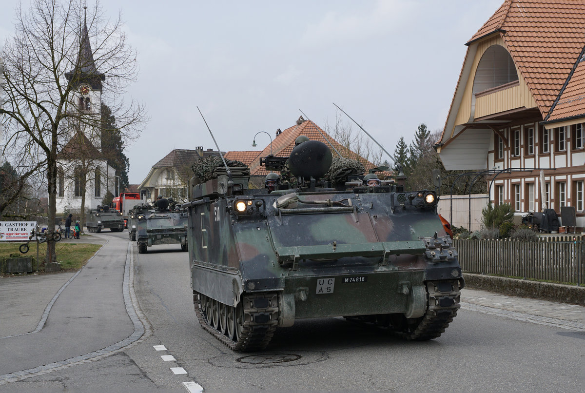 M 113 Kdp Pz 63 anlässlich der Ortsdurchfahrt Grossaffoltern. Im Hintergrund erkennbar sind M 113 Sap Pz 63.